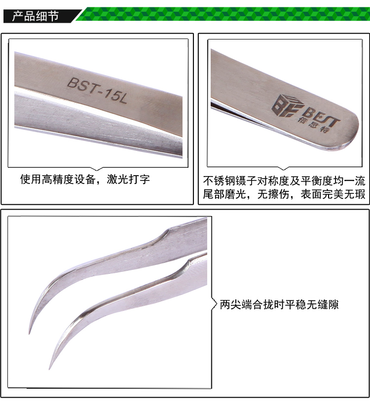 ? 产品名称: 亮光镊子 不锈钢镊子? 产品型号: BST-15L? 产品类别: 镊子系列